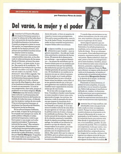 | Febrero 1988 |   | Del varón, la mujer y el poder