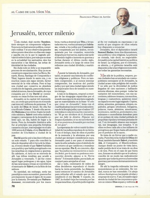 | | Mayo 1996 |   | Jerusalén, tercer milenio