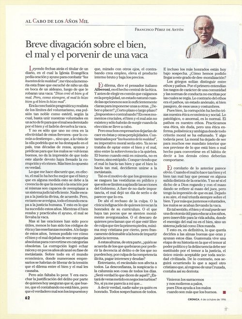 | Octubre 1996 |     | Breve divagación sobre el bien, el mal y el porvenir de una vaca