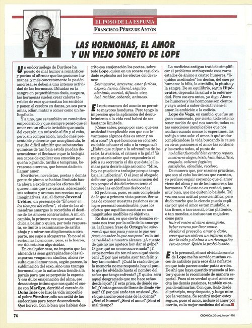 | | Julio 1990 |     | Las hormonas, el amor y un viejo soneto de Lope