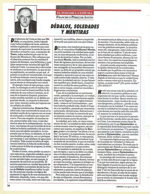 | Agosto 1990 |     | Dédalos, soledades y mentiras