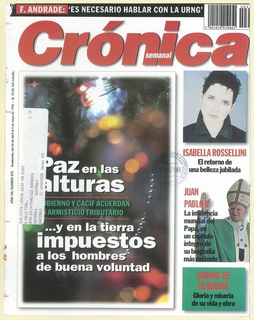 |   | Paz en las alturas ... y en la tierra impuestos a los hombres de buena voluntad 1995 | Literatura Relacionada | Videos Relacionadas |